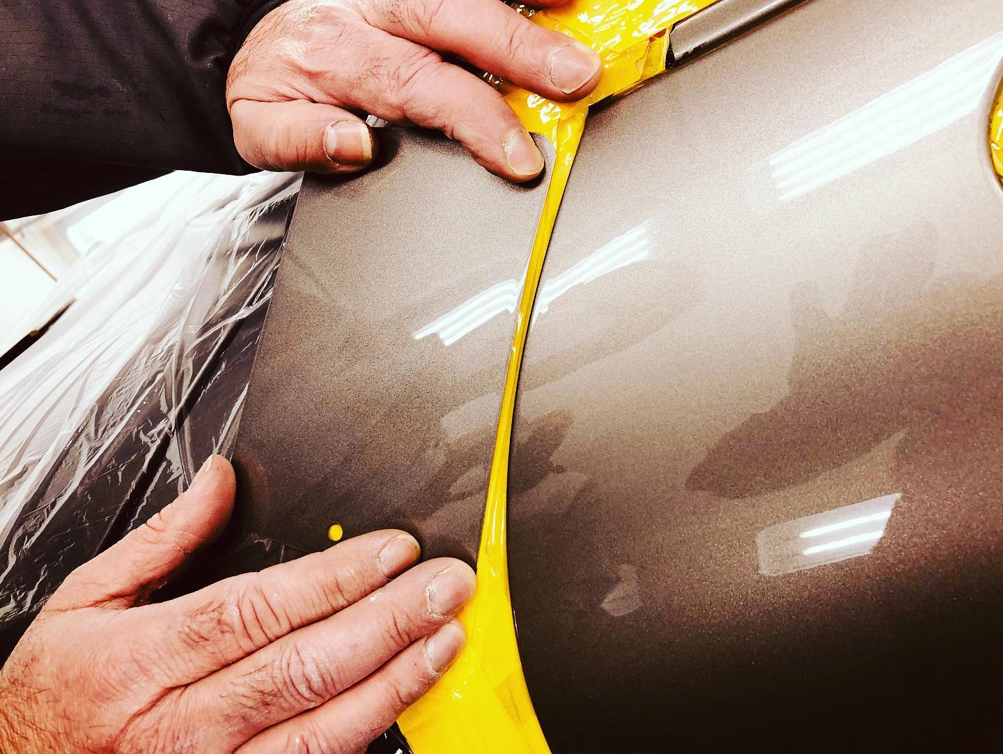 Zona di montaggio e installazione di pellicole oscuranti, car wrapping e riparazione e sostituzione cristallizzati.